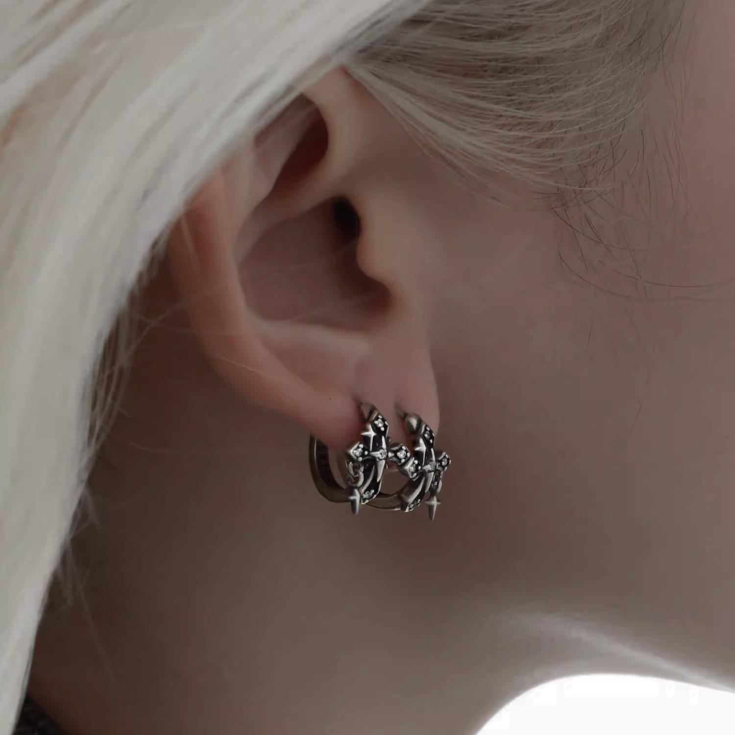 S925 ASTRA CROSS MOTIF PIERCE[SET ITEM]